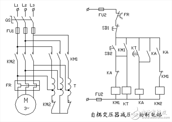 自耦變壓器減壓起動控制電路工作原理: