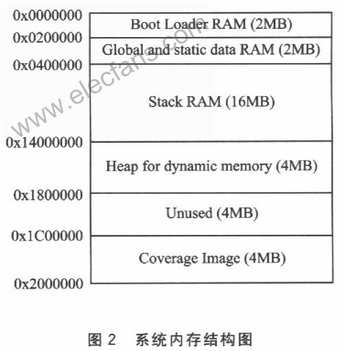 ?、徇\行二進制代碼,在這個過程中,系統(tǒng)內(nèi)存結(jié)構(gòu)如圖2所示。