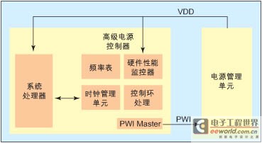 APC利用來(lái)自硬件性能監(jiān)控電路的輸入信號(hào)來(lái)確定是否存在任何的電源電壓優(yōu)化方法。APC通過(guò)PWI將電壓調(diào)節(jié)指令傳送至PMU,而PMU便按照請(qǐng)求提供所需的供電電壓。HPM不斷監(jiān)控工作在最新調(diào)節(jié)電壓下的芯片。如果能采用進(jìn)一步的優(yōu)化措施,APC會(huì)發(fā)出最新的電壓調(diào)節(jié)指令。電源必須按照APC的命令適時(shí)地調(diào)節(jié)其供電電壓,以便AVS控制系統(tǒng)的反饋環(huán)路能夠穩(wěn)定。