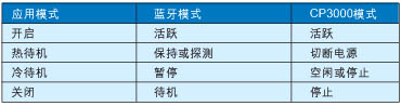 我們可以利用不同的方式來(lái)執(zhí)行這些模式,以便達(dá)到節(jié)能的目的。雖然沒有一套現(xiàn)成的規(guī)律可以適用于所有系統(tǒng),但表1列出了將應(yīng)用電源管理模式映射到藍(lán)牙及CP3000模式的實(shí)際應(yīng)用。