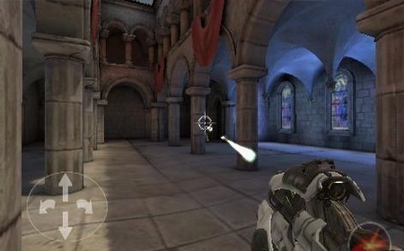 這個DEMO既可以當成小游戲來玩,也可以作為演示程序來欣賞。它使用的是一個修改版“虛幻競技場”關卡,操控當然依靠多點觸摸屏:左手拇指利用左下角的虛擬搖桿控制移動,右手拇指控制方向,點擊屏幕即可射擊。
