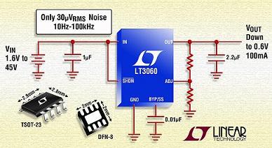 凌力爾特公司 (Linear Technology Corporation) 推出的高壓、低噪聲、低壓差電壓線性穩(wěn)壓器 LT3060。該 IC 在滿負載時提供高達 100mA 的連續(xù)輸出電流和 300mV 壓差電壓。