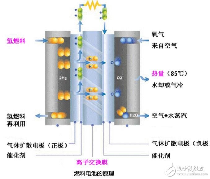 所有燃料電池的基本工作原理都是相同的:將氫的化學(xué)能轉(zhuǎn)化為