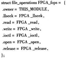 注冊設(shè)備編號僅僅是驅(qū)動代碼必須進(jìn)行的諸多任務(wù)中的第一個。驅(qū)動操作包括三個重要的內(nèi)核數(shù)據(jù)結(jié)構(gòu),稱為file_operations、file和inode。其中,對于FPGA驅(qū)動來說,最值得關(guān)注的是文件操作(file_operations)。