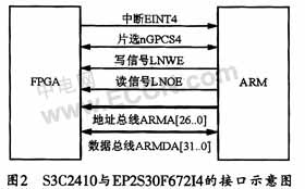 通常在大容量存儲項目中,S3C2410處理器一般作為主CPU,可對EP2S30F67214進(jìn)行擴展,以使系統(tǒng)具有拍攝、存儲、下載、I/O口擴展的功能。由于FPGA的高速處理能力和易擴展性,ARM與FPGA的結(jié)合使用,將在嵌入式系統(tǒng)領(lǐng)域占據(jù)主導(dǎo)地位。