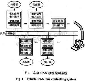 。1993年11月,ISO正式頒布了高速通信控制局域網(wǎng)(CAN)的國際標(biāo)準(zhǔn)(ISO11898)。CAN總線系統(tǒng)中現(xiàn)場數(shù)據(jù)的采集由傳感器完成,目前,帶有CAN總線接口的傳感器種類還不多,價(jià)格也較貴。本文給出