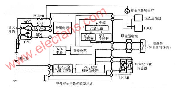 安全氣囊系統(tǒng)控制電路示意圖
