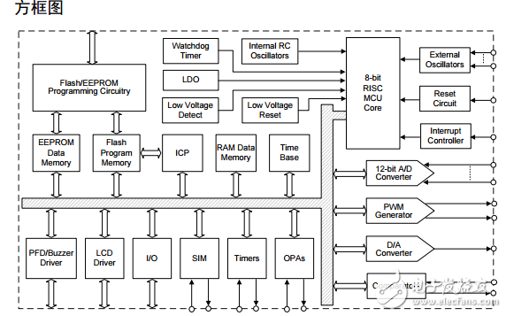 HT45F23A 和 HT45F24A 是具有 A/D 功能及 HOLTEK 低功耗架構(gòu)的 8 位高性能精簡指令集的 Flash 型單片機(jī),專門為需要直接接模擬信號的應(yīng)用產(chǎn)品所設(shè)計(jì)。單片機(jī)具有更高的增益帶寬,更適合較高頻率的應(yīng)用。單片機(jī)具有一系列功能和特性,其 Flash 存儲(chǔ)器可多次編程的特性給用戶提供了極大的方便。存儲(chǔ)器方面,還包含了一個(gè) RAM 數(shù)據(jù)存儲(chǔ)器和一個(gè)可用于存儲(chǔ)序號、校準(zhǔn)數(shù)據(jù)等非易失性數(shù)據(jù)的 EEPROM 存儲(chǔ)器。在模擬特性方面,單片機(jī)包含一個(gè)多通道 12-bit A/D 轉(zhuǎn)換器、兩路 PWM 輸出、兩個(gè)運(yùn)算放大器、兩個(gè)比較器、一個(gè)內(nèi)置 2.4V 或 3.3V LDO 電壓調(diào)節(jié)器和一個(gè)用于語音輸出的 12-bit D/A 轉(zhuǎn)換器電路。內(nèi)建完整的 SPI 和 I 2 C 功能,為設(shè)計(jì)者提供了一個(gè)易與外部硬件通信的接口。內(nèi)部看門狗定時(shí)器、低電壓復(fù)位和低電壓檢測等內(nèi)部保護(hù)特性,外加優(yōu)秀的抗干擾和 ESD 保護(hù)性能,確保單片機(jī)在惡劣的電磁干擾環(huán)境下可靠地運(yùn)行。單片機(jī)內(nèi)建完整的系統(tǒng)振蕩器,無需外圍元器件。提供了豐富的振蕩器功能選項(xiàng),包括內(nèi)部、外部、低速和高速振蕩器功能。盛群半導(dǎo)體獨(dú)特低功耗技術(shù)也使單片機(jī)具有極低電流功耗的特性,該特性對于要求低功耗的電池電源應(yīng)用方面極為重要。秉承 HOLTEK 單片機(jī)的一般特性,單片機(jī)帶有暫停和喚醒功能,振蕩器選項(xiàng),可編程分頻器等豐富的功能選項(xiàng),只需使用極少的外部元器件便可實(shí)現(xiàn)用戶的需求。外加時(shí)基功能、I/O 使用靈活等其它特性,使單片機(jī)可以廣泛應(yīng)用于各種產(chǎn)品中,例如煙感器、電子測量儀器、環(huán)境監(jiān)控、手持式測量工具、家庭應(yīng)用、電子控制工具、馬達(dá)控制、家庭安全系統(tǒng)以及其它方面。