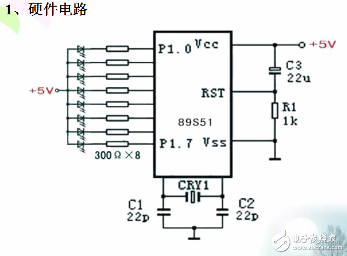 只LED發(fā)P1口外接8光二極管模擬彩燈
