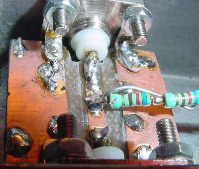 Here is a closeup, note the tab compensation wire, that is adjusted close to the two first resistors,