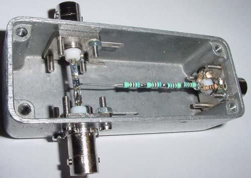 Here is my simple homemade -40dB tap, using 3 BNC connectors a small cheap box and a few resistors.