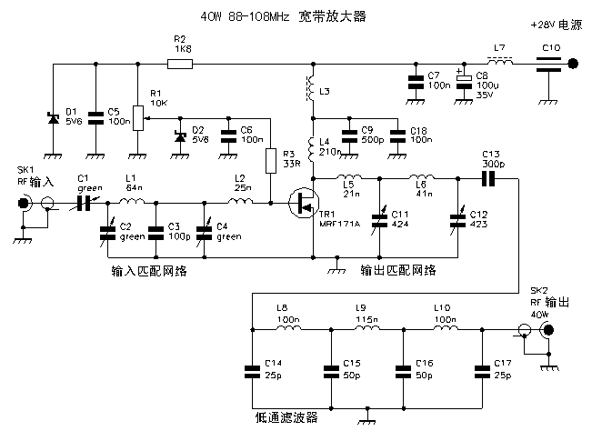 40瓦調(diào)頻FM廣播放大器電路圖資料分享