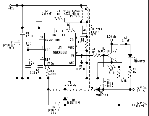 0 This 8 watt, dual output (+/- 12 volts), off-line power supply is designed around a flyback