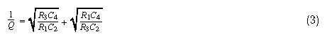 When n = 1 (i.e., when R3 = R1), the quantity (n+1/n) has a minimum value of 2. Thus, the filter capacitors will be equal-valued when Q = 1/2 and the resistors are set equal to each other. For all Qs higher than 1/2 (the most common case by far), C2 must be larger than C4. If the resistors are not equal, the ratio of C2 to C4 must be made larger. To minimize this spread in capacitor values, the resistor values should therefore be equal.![]()