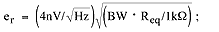 To simplify calculation, remember that the noise generated by a 1kΩ resistor in a 1Hz bandwidth is 4nVRMS. That information reduces the formula t