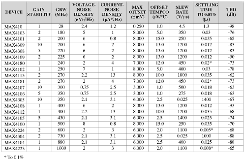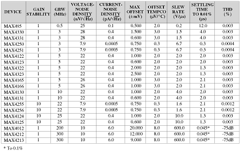 Table 1. Op amp family for ADC driver applications