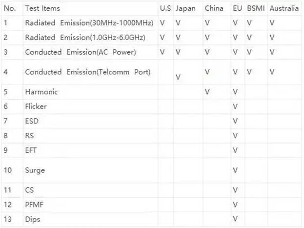 不同的國家和組織都有各自的認證標準,這些標準各自代表本國對于電子產(chǎn)品相關(guān)性能和參數(shù)的準入要求,目前全球主要的組織和標準有幾種: