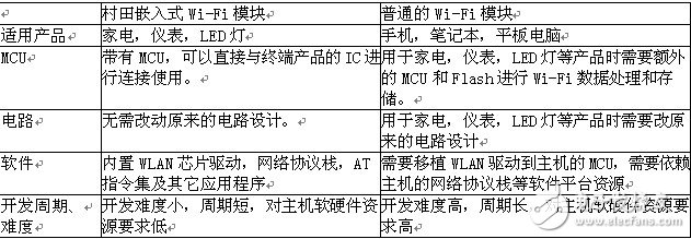 模塊,因為終端產(chǎn)品的MCU和Flash都無法支持Wi-Fi的功能,因此需要額外的MCU和Flash進行數(shù)據(jù)處理和存儲。為在這些產(chǎn)品上的應(yīng)用提供方便,簡單的解決方案,村田開發(fā)了帶有MCU的Wi-Fi模塊-嵌入式Wi-Fi模塊。嵌入式Wi-Fi模塊與普通的Wi-Fi模塊有哪些區(qū)別?