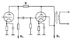 ??? 將后一級放大管屏極的信號,通過電阻R反饋到前一級電子管的屏極。因前級信號經柵極倒相后,前級與后級兩管的屏極相位亦相反,這樣即組成屏至屏極的負反饋網(wǎng)絡。反饋電阻R的阻值—般取1—1.5MΩ。若R的阻值過小時,會降低輸入阻抗,同時對放大器的低頻響應造成影響。