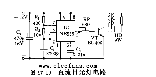 一般直流日光燈采用分立元件組成,而這個(gè)電路由TWH8751功率開關(guān)加幾個(gè)外圍元件組