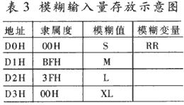在RAM中開辟一塊區(qū)域,存放各模糊輸入量?如表3所示。