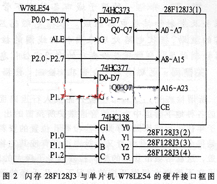 2.2.1 大容量閃存28F128J3與單片機W78LE54的硬件接口