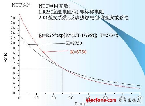 NTC電阻的阻值和溫度的對應(yīng)關(guān)系如上圖所示,圖中可以看出,該電阻對應(yīng)溫度有一個非常明確的對應(yīng)關(guān)系。該電阻還可以用來進(jìn)行一些電路的負(fù)溫度補(bǔ)償。