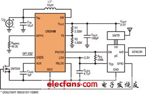 LTC3105是一款完整的單芯片解決方案,適用于從低成本、單節(jié)光伏電池收集能量。其集成的最大功率點控制和低壓啟動功能允許直接用單節(jié)光伏電池工作,并確保最佳能量抽取。LTC3105可用來直接給電路供電,或給能量存儲器件充電,以允許在黑暗或光照很少時工作。LTC3105使其有可能實現(xiàn)自主遠程傳感器節(jié)點、數(shù)據(jù)收集系統(tǒng),以及其他要求不依賴電網(wǎng)和最低限度維護的應用。