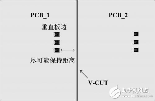 貼片電阻的另外一種常見的損壞是機械損傷后呈開路狀態(tài),后續(xù)導(dǎo)致電路異常(器件外觀有可能正常)。下面是幾個小建議:1、如果是手折板的話(極少使用,無法機器分板,毛刺大),貼片電阻長度方向平行于PCB板邊,零件受的應(yīng)力小;如果是V-CUT的話,貼片器件長度方向垂直于PCB邊,零件破裂可能性較小。2、元件如果與連接處垂直,到連接處的距離建議要≥4mm,若平行,距離建議要≥1.5mm。3、在成本允許的情況下,適當(dāng)加厚PCB板厚度,特別是面積比較大的板子。(下面是兩個簡單的示意圖,實際情況請實際分析。)