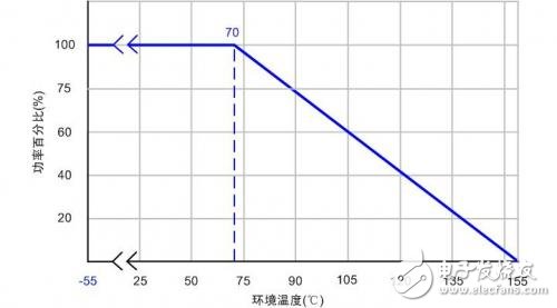 額定工作電壓是與功率掛鉤的,而最大工作電壓是在額定功率下,該電阻可以承受的最大電壓。但是要注意!看下面這個圖。可以看出額定功率是在最高環(huán)境溫度70度的條件下標(biāo)注的(不同廠家,系列可能有微小區(qū)別,在設(shè)計之初和問題查找的時候應(yīng)該核實清楚。)