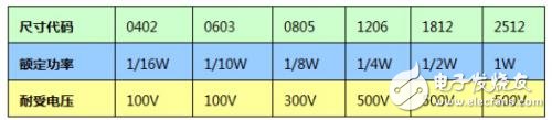 表一 常用SMT厚膜電阻