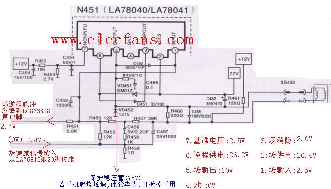 引腳 主要功能1 運(yùn)算功放反相輸入端2 電源電壓輸入端3 泵電源輸出端4 接地端5 場(chǎng)偏轉(zhuǎn)線圈激勵(lì)輸出端6 場(chǎng)輸出級(jí)電源電壓輸入端7 運(yùn)算功放同相輸入端同LA7840可直接互換