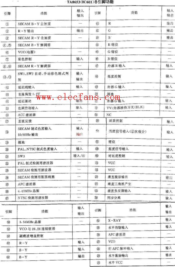TA8653的各引腳功能及電壓資料