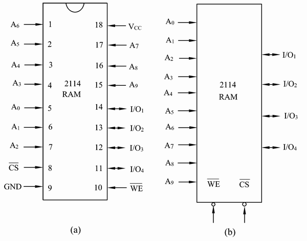 常用的靜態(tài)RAM芯片有2114、 2142、 6116、6264等。下面僅舉幾例。 Intel 2114是一個容量為1K×4位的靜態(tài)RAM芯片,其內部結構如圖2.3所示,芯片的引腳圖和邏輯符號見圖2.4(a)和(b)。