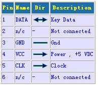 PS 2 鼠標(biāo)接口引腳定義圖