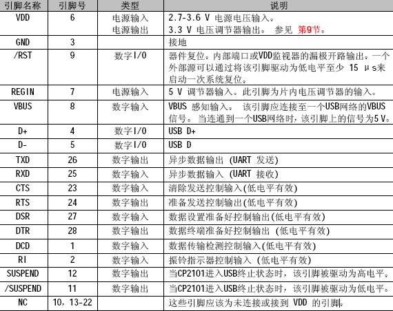 CP2101/CP2102的引腳定義
