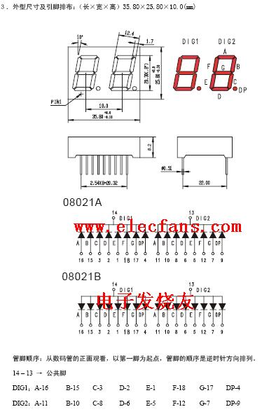 三位數(shù)碼管引腳圖以及封裝尺寸