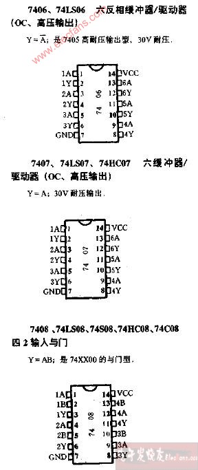 74HC07/7407引腳功能管腳定義圖 -六反相緩沖器/驅(qū)動器