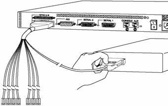 如圖17所示的為同步串行口與Internet接入設備連接的示意圖,在連接時只需要對應看一下連接用線與設備端接口類型就可以知道正確選擇了。