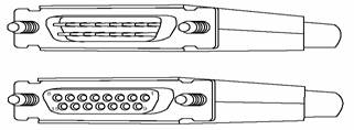 在路由器中所能支持的同步串行端口類型比較多,如Cisco系統(tǒng)就可以支持5種不同類型的接口,分別是:EIA/TIA-232接口、EIA/TIA- 449接口、V.35接口、X.21串行電纜總成和EIA-530接口,所對應的適配器圖示分別如圖12、圖13、圖14、圖15、圖16所示。要注意的一點就是,一般來說適配器連線的兩端是采用不同的外形(一般稱帶插針的一端稱之為"公頭",而帶有孔的一端通常稱之為"母頭"),但也有例外,"EIA- 530"接口兩端都是一樣的接口類型,這主要是考慮到連接的緊密性,參見圖16.其余各類接口的"公頭"為DTE(數據終端設備,Data Terminal Equipment)連接適配器,"母頭"為DCE(數據通信設備,Data Communications Equipment)連接適配器。