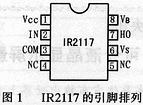 IR2117采用標(biāo)準(zhǔn)的雙列直插式DIR-8或小型雙列扁平表面安裝SOIC-8封裝形式,這兩種封裝形式的引腳排列相同,其引腳排列如圖1所示,各引腳的名稱、功能和用法如表1所列。