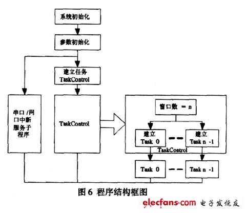 基于上述方案, MCU 程序的設(shè)計變得非常簡潔。程序結(jié)構(gòu)如圖6 所示, 控制器上電后, 首先進行系統(tǒng)初始化, 然后從FLASH 中讀取屏參數(shù), 進行參數(shù)初始化。接著建立任務(wù)TaskCONtrol, TaskControl 擁有比各窗口顯示任務(wù)都要高的優(yōu)先級, 它主要用于對各窗口顯示任務(wù)進行實時管理。每隔一段時間TaskControl 就要對reset 標志進行一次查詢, 如果reset=1, 它會刪除原先建立的各窗口顯示任務(wù), 然后從FLASH 中讀取新的窗口個數(shù), 依此建立新任務(wù), 將每個窗口的顯示交由單個窗口顯示任務(wù)來控制。